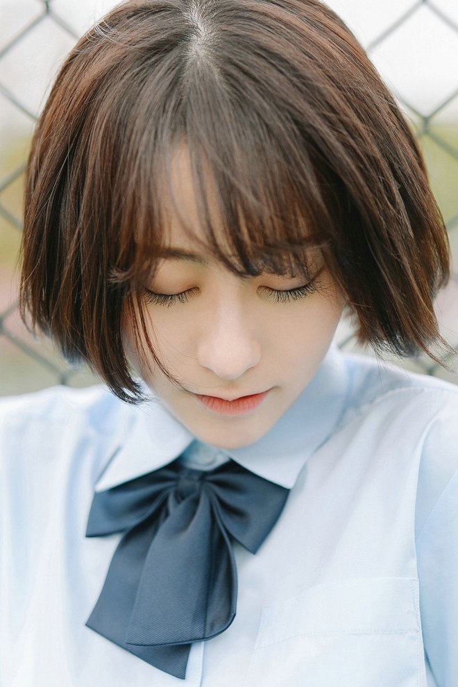 清新阳光皮肤白嫩短发清纯学生妹校园甜美俏皮活力唯美写真